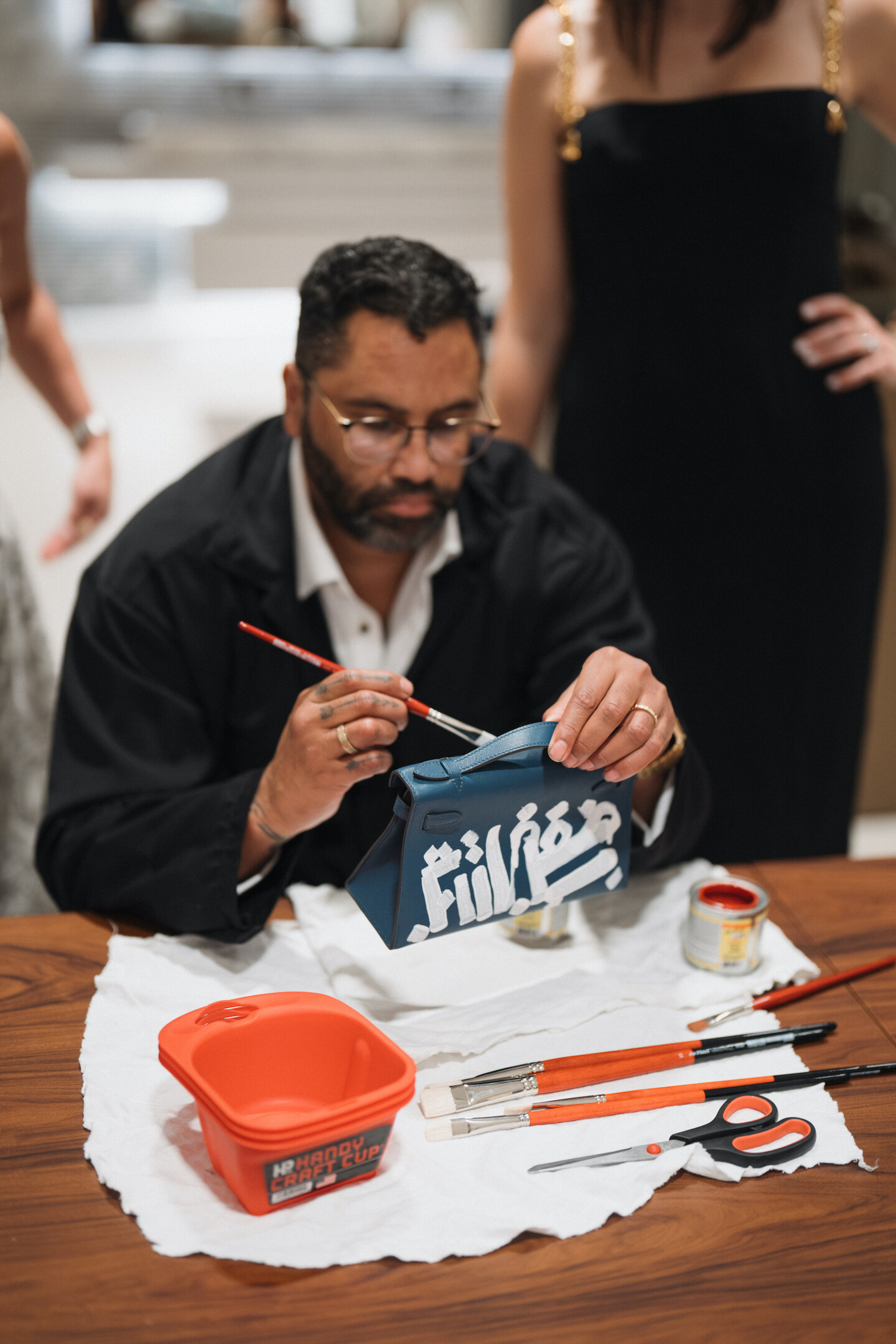 Колаборація вийшла за межі скульптури: RETNA також здійснив живе каліграфічне втручання на одному з рідкісних предметів із кураторської добірки JaneFinds, перетворивши колекційний аксесуар на унікальний арт-об’єкт і розширивши діалог між сучасним мистецтвом, модою та колекційним дизайном.